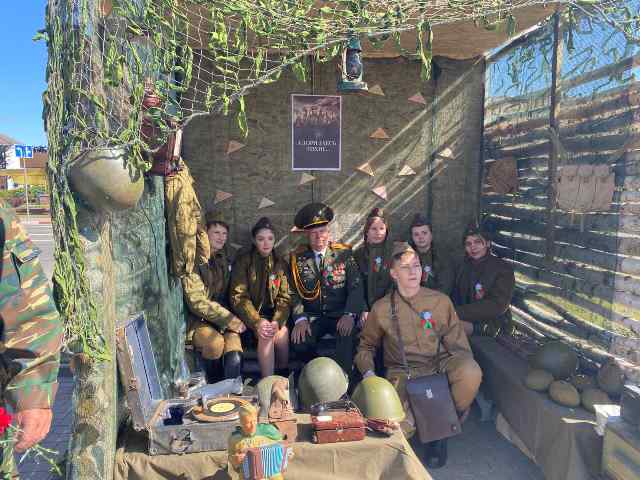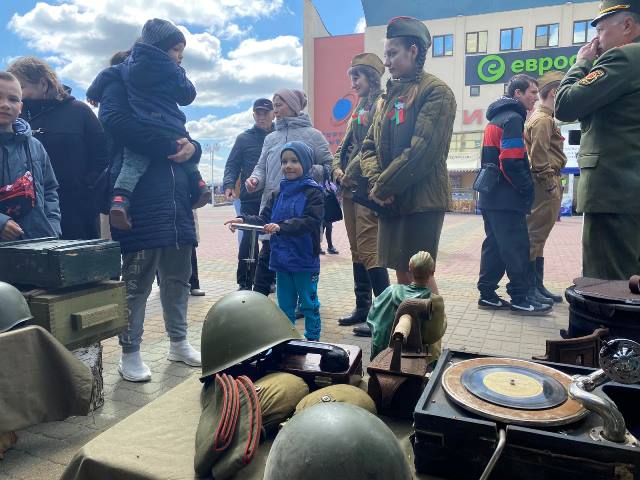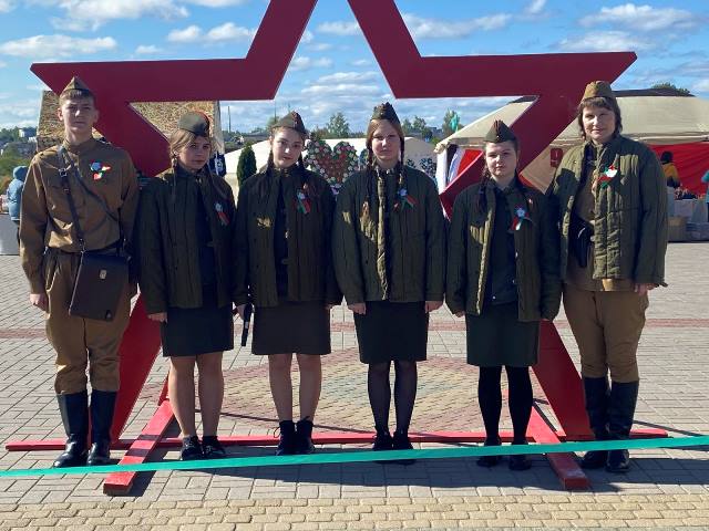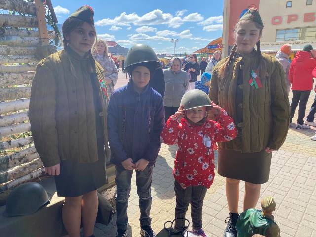 9 мая на центральной площади города в день Победы в рамках районного праздника для жителей и гостей работали интерактивные площадки «Подвигу – не погаснуть. Памяти - жить». Обучающимися и педагогами нашего учреждения образования была организована интерактивная площадка « А зори здесь тихие…» На площадке посетители могли сделать фото, угоститься «солдатской кашей», примерить солдатскую каску, испить воды из баклаги, погреться у буржуйки. Особый интерес у посетителей вызвал бюст Василия Теркина - героя произведения А.Твардовского.