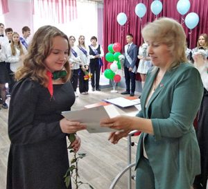 Затем слово было предоставлено Татьяне Тарасевич. Она поздравила школьников от имени Глубокского райисполкома и районного Совета депутатов. Татьяна Леонидовна отметила, что в этот день традиционный последний звонок прозвучал во всех школах Глубокского района для 373 девятиклассников и 196 выпускников 11-х классов.