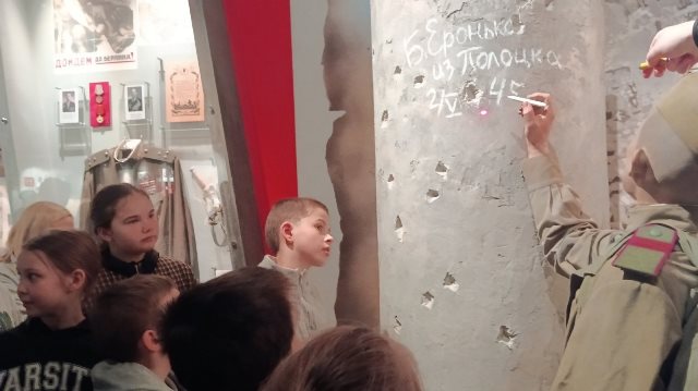 Вниманию школьников предстала уникальная экспозиция. Экскурсовод подробно осветил события тех лет: от героической обороны Полоцка до суровых будней жителей в оккупации. Но главное впечатление на ребят произвели подлинные предметы — личные вещи бойцов, истрепанные письма с фронта, пробитое обмундирование и образцы оружия. Глядя на эти экспонаты, каждый почувствовал, что перед ним не просто музейные предметы, а молчаливые свидетели подвига и стойкости.